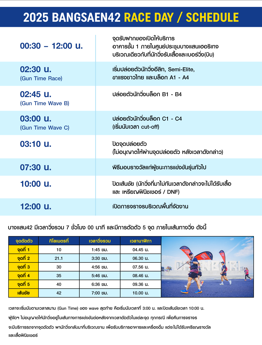 Bangsaen42 is one of the highlights on the Bangsaen Marathon race calendar, which consists of 3 premier races in total. The series has also included the WA Platinum Label-holding Bangsaen21 Half Marathon and the 10K race Bangsaen10.