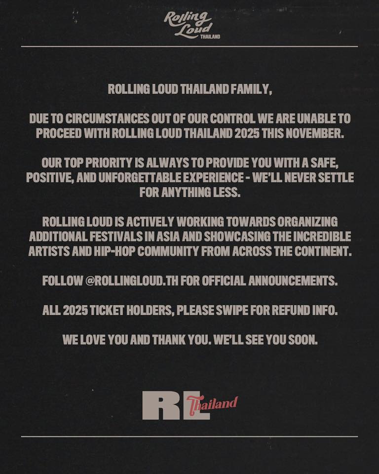 Event Updated: Rolling Loud Thailand 2025 is canceled