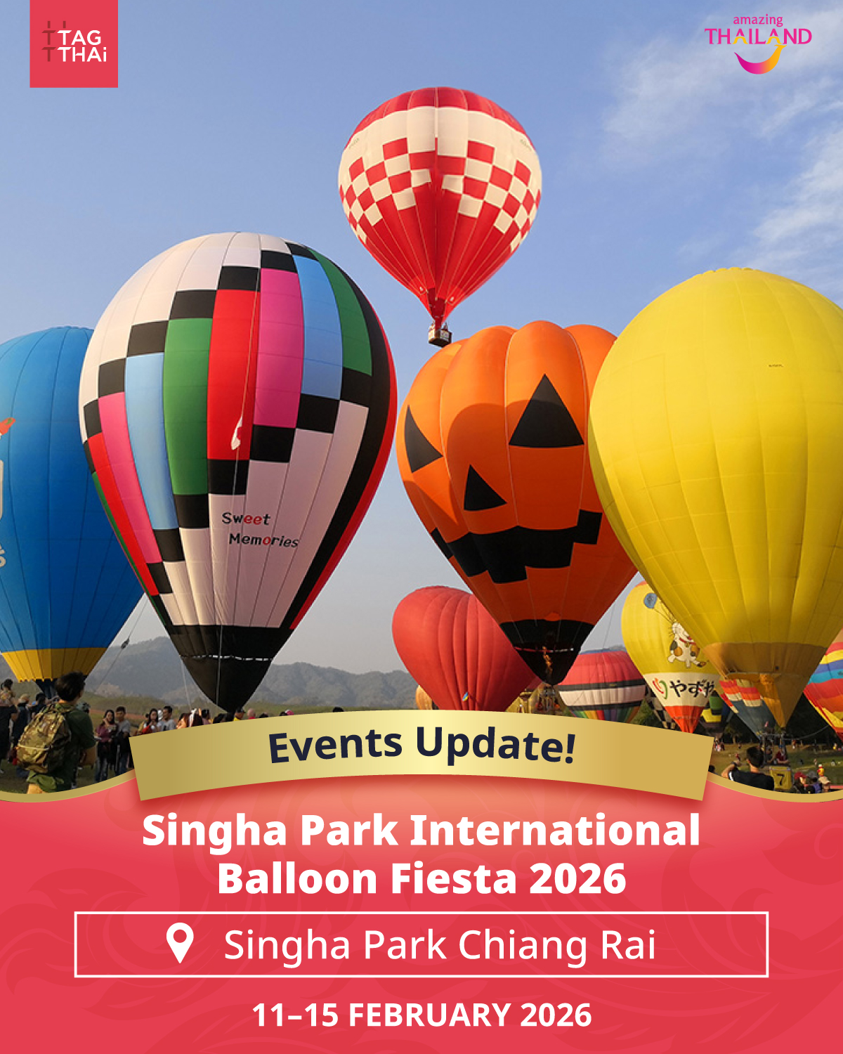 If you’re planning a trip to Thailand in February, the Singha Park International Balloon Fiesta 2026 should be on your travel list. The festival is held at Singha Park Chiang Rai in the Mueang District, surrounded by views of hills, tea plantations, and open fields. The activity strengthens Singh Park’s aim of becoming known as a “World Class Love Destination.”