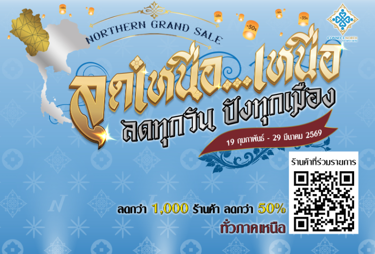 ภาคเหนือคึกคักอีกครั้ง กับโครงการ “ลดเหนือเหนือ ลดทุกวันปังทุกเมือง” แคมเปญกระตุ้นเศรษฐกิจระดับภูมิภาคที่จัดขึ้นระหว่างวันที่ 19 กุมภาพันธ์ – 29 มีนาคม 2569 ครอบคลุมพื้นที่ 17 จังหวัดภาคเหนือ โดยความร่วมมือของเครือข่ายหอการค้าไทยและหอการค้าภาคเหนือ โดยโครงการมีเป้าหมายเพื่อกระตุ้นการจับจ่าย เพิ่มยอดขายให้ผู้ประกอบการ และสร้างภาพลักษณ์ภาคเหนือเข้มแข็ง สร้างสรรค์ ร่วมมือ อย่างเป็นรูปธรรม